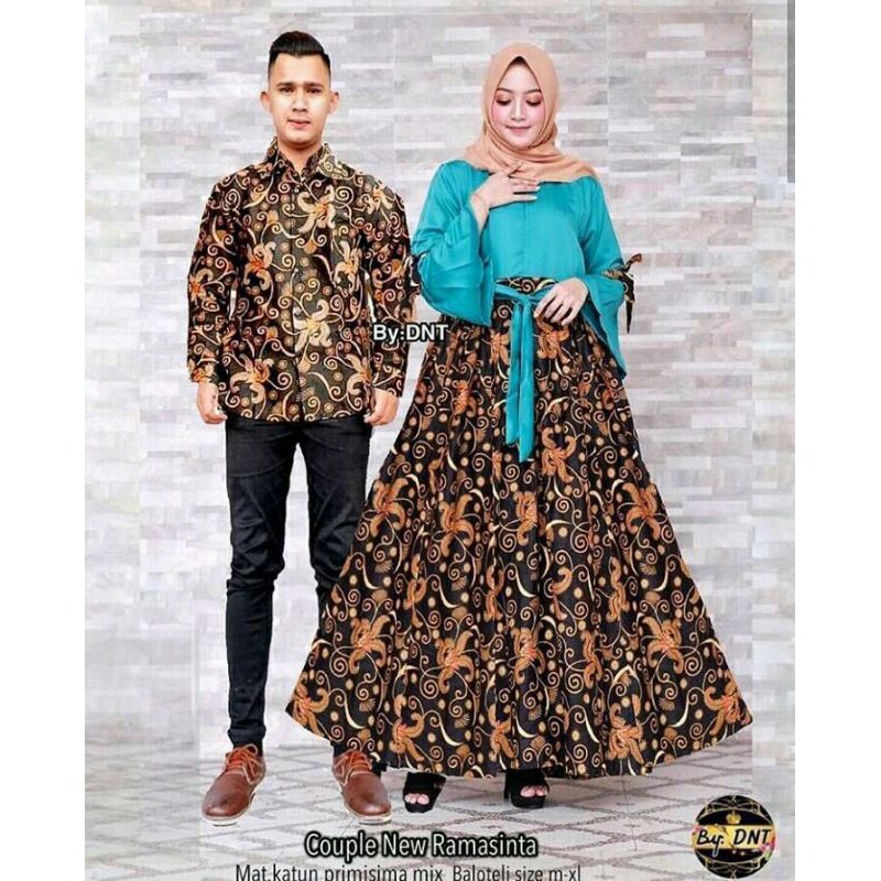 Name: Couple Batik New Ramasinta Model Gamis Exclusive Premium Kondangan Pesta Pink Gold Latte Tosca