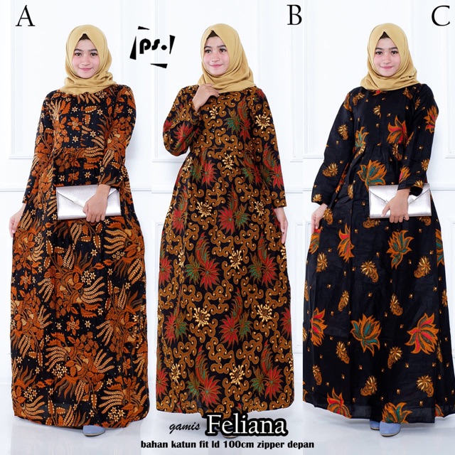 Name: Batik Gamis Wanita Feliana Kondangan Murah Kekinian Pakaian Longdres Dress Panjang Kerja Seragam
