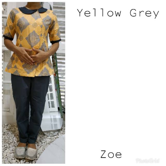 Name: Diskon Besar!!! Baju Seragam Suster Batik Modern Zoe Nanny Uniform Kuning Abu S1 M1